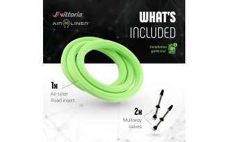 El polímero de alta densidad que compone el Air-Liner Road se comprime bajo el PSI más alto, es decir cuando llenamos de presión nuestras ruedas, por lo que permite que la carcasa y el compuesto del neumático mantengan su sensación de flexibilidad y todas sus propiedades mientras estamos rodando, por el contrario, en caso de pinchazo, cuando la rueda comienza a desinflarse, el Air-Liner Road se expande para llenar el vacío, manteniendo el neumático seguro en su sitio sin que se produzcan destalonamientos y permitiéndo recorrer hasta 50 km sin aire.
