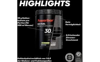 Con el Isofuel Isotonic Sport Drink 30g de Powerbar Black Linepodrás ingerir 30 g de hidratos de carbono por cada servicio, en una proporción 1:0,8 de fuentes de glucosa y fructosa - para un suministro óptimo de energía durante la actividad deportiva.
