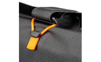 Se compone de nylon de alta tenacidad que garantiza la resistencia frente a enganchones y roces y hacerla hermética al agua, incluyendo el cierre de la cremallera (índice IP65), atraviesa los arroyos sin ningún temor. Esta bolsa resulta idónea para bicicletas de MTB de doble suspensión en las que el espacio en el cuadro es reducido. Proceso de fabricación libre de PVC.