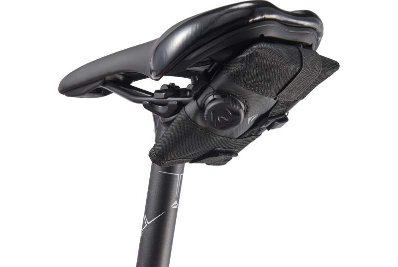 La bolsa de sillín Merida Expert Boa viene equipada con un ingenioso sistema de cierre del dial A-top que fija la bolsa de forma segura a los raíles del sillín, a la vez que cierra el diseño plegable, evitando que el agua y el barro entren en su interior.