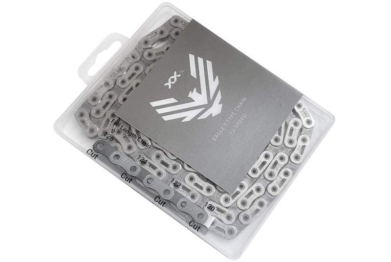La palabra Eagle hace referencia a las transmisiones monoplato, Eagle es la denominación de transmisión más ligera, sencilla, duradera y fácil de usar, Sram líder en transmisiones de 12 velocidades ha desarrollado desde que saco al mercado los componentes de 12 velocidades hasta la fecha, es ahora cuando nos presenta su cadena Sram XX SL Eagle T-Type Flattop™, una cadena nueva, presentando la mejor relación rigidez – peso, siendo la más ligera en el catálogo de Sram. Diseñada específicamente para ser utilizada con el resto de componentes Sram T-Type, aunque también puede ser usada con cualquier componente Eagle de 12 velocidades.