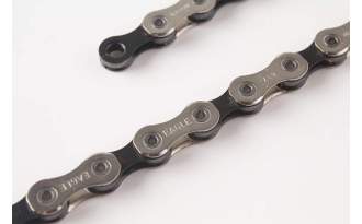 La cadena Sram Eagle GX 12v representa uno de los modelos de cadenas del mercado de 12 velocidades con la mejor relación calidad/precio más eficientes del mercado, proporcionando cambios suaves y eficientes que nos cuidaran del resto de los componentes de nuestra transmisión, es un modelo que hereda la estructura y cualidades de los modelos anteriores tope de gama Sram Eagle XX1 y X01, diferenciándose de estas en la actualidad por tener unos gramos de más, que se deben al sistema de remaches macizos acabado en níquel de los eslabones.