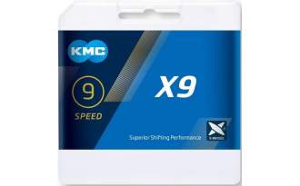 La cadena KMC X9 es compatible con transmisiones de cualquier marca con 9 velocidades, posee una gran durabilidad que prácticamente duplica la vida útil de la cadena comparándola con opciones como Shimano.