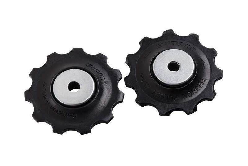 El juego de roldanas Shimano RD-M593 contiene la polea guía y la polea de tensión. Están construidas con rodamientos sellados. Elemento fundamental para que el funcionamiento de la transmisión sea fluido y sin fricción.