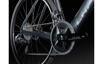 El sistema de transmisión viene montado en la marca Sram, el Rival ETAP AXS de 12 velocidades, el desarrollo que trae es 48-35T en sus platos y un cassette de 10-36T proporcionando un rango de marchas enorme para cualquier tipo de terreno, desde las subidas mas empinadas a las rutas mas llanas asegurando siempre la capacidad de alcanzar las máximas velocidades en el momento adecuado el cambio trasero SRAM Rival ETAP AXS y el desviador delantero Rival ETAP AXS ofrecen un rendimiento impecable, sin interrupciones ni pérdida de potencia. La ventaja del sistema electrónico y sin cables de SRAM es que reduce el mantenimiento y mejora la estética y la aerodinámica del conjunto.