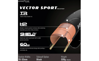 La cubierta Goodyear Vector Sport TLR es la elección definitiva para los ciclistas que no pueden permitirse un pinchazo en medio del recorrido. Con su doble cinturón antipinchazos R:Shield y una carcasa robusta de 60 TPI de una sola capa, esta cubierta te ofrece una protección excepcional sin sacrificar rendimiento. Su diseño Tubeless Ready permite una conducción más suave y eficiente, mientras que la versión tipo tubo sigue siendo una opción confiable para quienes buscan fiabilidad en cualquier terreno. Ya sea bajo condiciones secas o mojadas, el Vector Sport se adapta a todas las situaciones, convirtiéndolo en el neumático ideal para ciclistas de resistencia que buscan ir más allá. Conduce con confianza, sin miedo a los obstáculos, y sigue avanzando más allá de tus límites