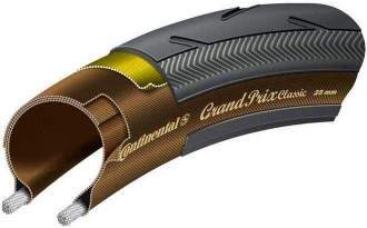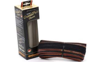 Las cubiertas Grand Prix Classic son igualmente elaboradas y con la misma tecnología que las Grand Prix normales, solo que cuentan con una estética más retro/clásica. Lleva los flancos del neumático en color marrón y su perfil de banda de rodamiento simula a las Conti Sport de 1982.