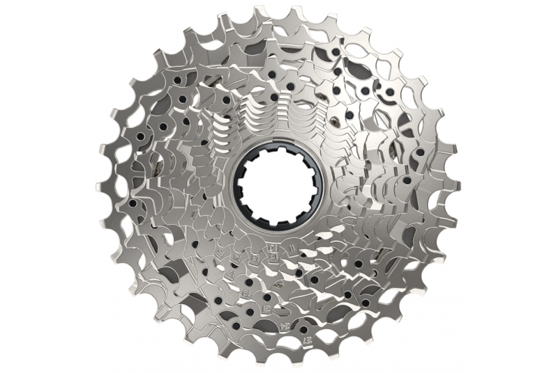 El cassette Sram Rival AXS XG-1250 se distingue por lo liviano de su peso gracias a su construcción en acero hueco, que ha sido tratado térmicamente para dotarle de una rigidez y durabilidad superlativas; en este último aspecto también influye el corte que determina la forma de los dientes, pensado para mejorar el acople con la cadena y que el desgaste sea mínimo.