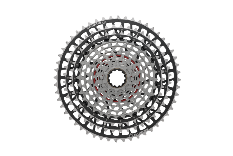 Para su construcción, Sram ha unido las 2 coronas 38 y 44 a la corona más grande de 52 dientes mediante el clásico sistema de pines ya utilizado en otros modelos, mientras que para las últimas 29 coronas se han unido en un solo bloque, esto significa que en el conjunto general se va a ver reflejado un pequeño ahorro de peso consiguiendo una mayor durabilidad, solidez y transmisión de fuerzas del conjunto, que con su tratamiento endurecido nos garantiza una alta durabilidad.