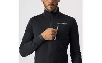Una prenda referencial, llamada a ser la opción la primera opción que te pase por la cabeza cuando eches un vistazo al armario; tanto para ciclistas profesionales como entusiastas... De igual manera, tanto para días frescos, como esas jornadas en la que la niebla nos va cerrando mientras cogemos altura y la sensación de frío se vuelve intensa. Así es la chaqueta Castelli GO, una combinación de materiales propios y ajenos cuyo denominador común es que nacen abrazados a la tecnología.