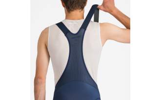 Como novedad Castelli nos presenta la renovación de uno de sus modelos más usados, el culotte Castelli Competizione 2, es un culotte corto de gran rendimiento y comodidad, este culotte incluye el modelo de badana KISS Air2, la cual nos ofrece una gran comodidad las horas que estamos encima de la bici, es una de las badanas que Castelli viene usando desde hace muchos años, quedando remarcada la fiabilidad de esta. Como novedad se ha producido una renovación de los tirantes sustituyendo los tirantes de rejilla por unos más cómodos de tipo rectangular que se acoplan a la perfección a nuestros hombros, también se ha cambiado la unión de estos tirantes con la parte de los muslos, estando más hacia los lados y evitando de esta forma que se produzcan tiranteces del tejido en la zona de la entrepierna, el resto de culotte incorpora el tejido texturizado Vortex, utiliza una sujeción de silicona al final de la pierna, integrada para garantizar un ajuste cómodo y seguro.