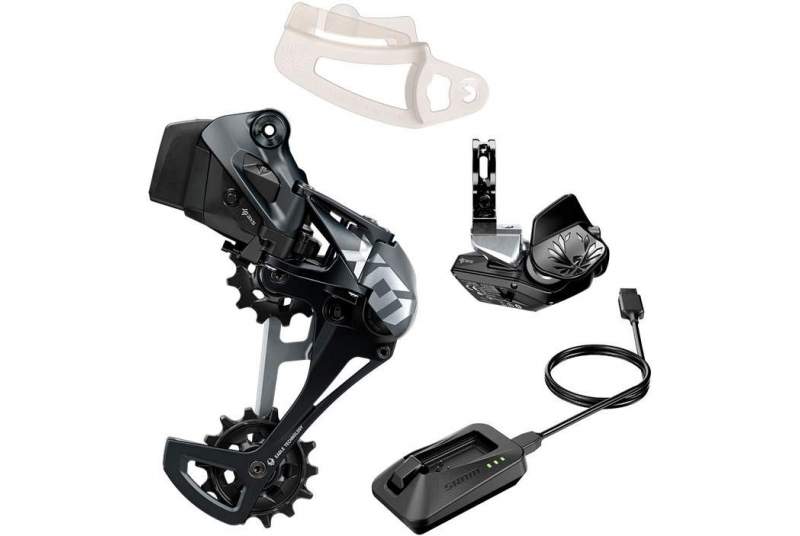 A partir de ahora, olvídate de los cables. Con el kit Sram X01 Eagle AXS entrarás en nuevo nivel de eficiencia: simplemente con apoyar el dedo en el pulsador del cambio, la cadena se empezará a mover por el cassette con una fluidez incomparable. Accionamiento instantáneo, rendimiento sin límites... Bueno, mejor dicho, el tiempo que dure la carga de la batería.