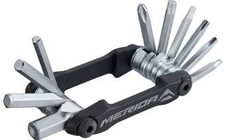 La multiherramienta Merida 11 en 1 es tu mejor aliado para realizar ajustes rápidos en todo momento. Con ella, tendrás en la palma de tu mano todo lo que necesitas para solucionar imprevistos sin perder un minuto más de pedaleo.