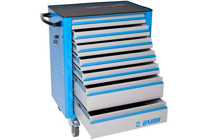 El carro Unior de herramientas Eurovision va a marcar la diferencia en tu espacio de trabajo. Construido en chapa de acero pintada en epoxi libre de cadmio y plomo, ofrece una resistencia y durabilidad que soportan hasta 400 kg de carga estática y 500 kg en dinámica, garantizando una herramienta confiable para el uso diario.