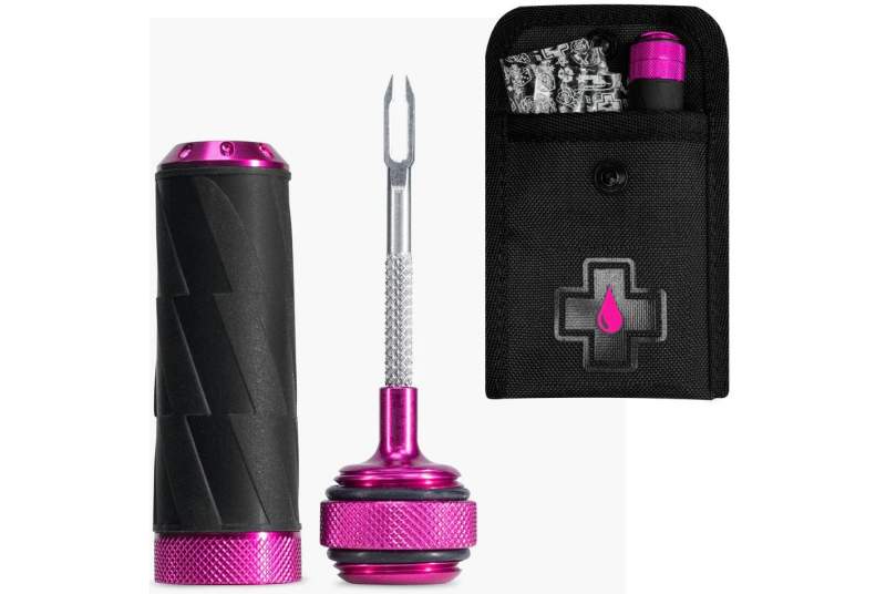 El kit cápsula mechas reparación tubeless Muc-Off ha sido diseñado para los ciclistas que no se detienen ante nada, siendo compacta y una potente herramienta 2 en 1 de acero inoxidable que actúa como escariador y aplicador de mechas, junto con un completo set de 15 tapones de diferentes grosores (5 finos, 5 medianos y 5 gruesos). Su cuerpo ha sido fabricado en aluminio 6061 mecanizados por CNC, lo que le aporta una resistencia superior con un peso casi insignificante: tan solo 26 gramos. Además, y gracias a su recubrimiento de silicona, garantiza un agarre firme, incluso con guantes o en condiciones de lluvia y barro.
