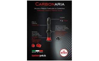 Juego de válvulas presta Barbieri Carbonaria Tubeless, fabricadas en fibra de carbono que garantizan unas excelentes prestaciones, ligera de 45 mm pesa únicamente 4 gramos, perfecto para quitar esos últimos gramos de más en nuestras ruedas y reducir de esa forma las inercias, incluye una tuerca en fibra de carbono para ajustar la válvula a la llanta y par ayudar a este ajuste cuenta con dos gomas diferentes que se adaptan la perfección a cualquier forma que tenga el interior de la llanta, el final de la válvula viene diseñado con un hueco que la hace compatible con el uso de mouse.