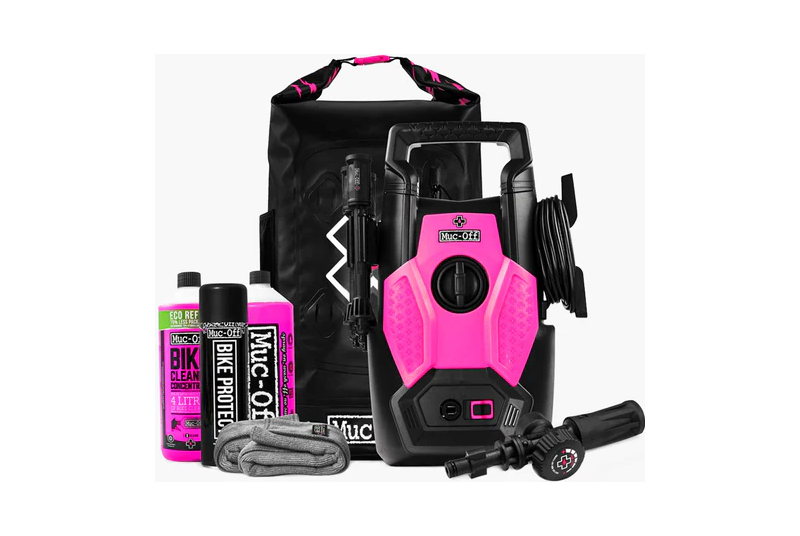 La Hidrolimpiadora Muc-Off es la primera del mundo diseñada específicamente para ciclismo y motociclismo, combinando potencia, precisión y cuidado. Su motor de 1200W genera una presión ideal de trabajo de 70 bar, suficiente para eliminar barro, grasa y suciedad sin dañar rodamientos, suspensiones ni acabados delicados.