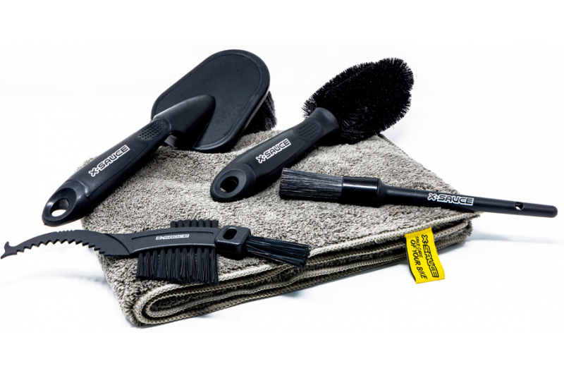 El Kit de Cepillos de Limpieza X-Sauce es la solución definitiva para mantener tu bicicleta impecable tras cada salida. Incluye todo lo necesario para una limpieza completa: cepillo de lavado suave, cepillo específico para ruedas, cepillo de rascado, cepillos para la transmisión y un paño extra suave de microfibra. Cada herramienta está diseñada para llegar a los rincones más difíciles sin dañar los componentes.