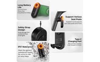 La batería de la luz Magene L508 es de larga duración, ofreciendo una autonomía de hasta 16 horas, un puerto de carga tipo C, cargando totalmente la batería en 3 horas, se puede moentar en tijas de diferentes formas, redondas, en forma de D, y aerodinámicas. El diseño de la correa de seguridad evita daños por caídas accidentales. Después de conectarse a la