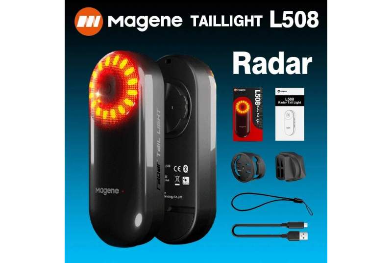 La luz Magene L508 es luz diseñada para ciclistas que ofrece un plus de seguridad gracias su dispositivo radar trasero integrado para ofrecer avisos visuales y acústicos cuando se nos aproxime un vehículo por detrás del ciclista, la luz Magene L508 es compatible con los ciclocomputadores más usados, Garmin, Wahoo, Bryton, Magene