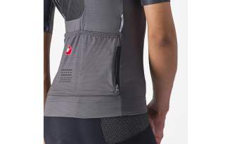 - Tejido Air_O Stretch diseñado por Castelli en el cuerpo, para transpirabilidad, comodidad y ajuste perfecto