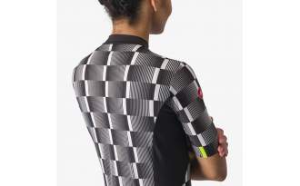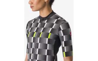 El Maillot Castelli Dimensione Mujer es una opción perfecta para los días más calurosos del año, este maillot se diseño apartir del modelo ya existente, el Competizione 3, con un tejido de microrrejilla Strada es lo suficientemente elástico para ofrecer un ajuste aero, manteniendo la capacidad de transpirabilidad óptima, pero además proporcionando un flujo de aire ideal para una buena refrigeración y control de la humedad, la cremallera completa YKK® Vislon®, una de la más fácil de abrir y cerrar del mercado. El Maillot Castelli Dimensione incluye el detalle de una banda de silicona en la parte inferior del maillot para asegurar un correcto ajuste en todo momento.