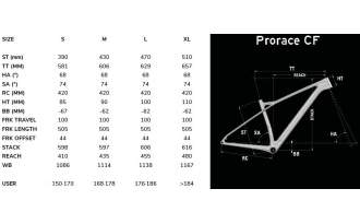 El cuadro de carbono de la Lapierre Prorace CF 7.9 se caracteriza por su ligereza y rigidez, lo que permite un rendimiento excepcional. Con una geometría diseñada para la competencia, el ángulo del tubo de dirección de 68 grados y un alcance que varía entre los 410 mm y 480 mm, ofrece una postura cómoda y agresiva a la vez, ideal para rodar rápido en terrenos difíciles. La longitud del tubo superior varía entre 581 mm y 657 mm, lo que garantiza una posición de conducción óptima según el tamaño del ciclista. Además, la distancia entre ejes de entre 1086 mm y 1167 mm proporciona estabilidad y control en todo momento.
