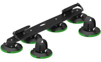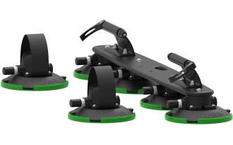 Incluye una plataforma d PC policarbonato de una sola capa mucho más liviana con 4 ventosas TreeFrog, cada una clasificada para contener 110 kg, 2 adaptadores de horquilla y otra 2 ventosas con un fuerte velcro para sujetar las ruedas traseras.