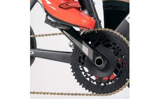 Como no podía ser de otra forma en un producto de estas características, los componentes son de una calidad sobresaliente; pensando, no solo en dotar al conjunto de los mejores acabados y durabilidad, sino de aportar al ciclista la máxima fiabilidad y rendimiento. Prueba de ello lo encontramos en el sistema 3-Hollowtech incorporado en las bielas, con una estructura de 3 huecos en el cuerpo del componente que aporta una gran rigidez y máxima transmisión de la potencia del pedaleo. La medición es simétrica, en ambas piernas, con un margen de error de 1.5%.