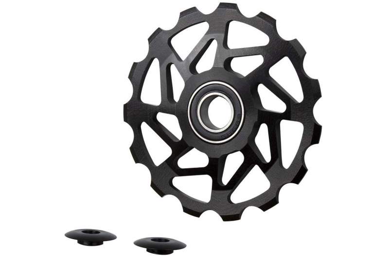 El juego de roldanas Eltin de 15 dientes contiene la polea guía y la polea de tensión. Están construidas con aluminio CNC y rodamientos 100% cerámicos. Elemento fundamental para que el funcionamiento de la transmisión sea fluido y sin fricción.