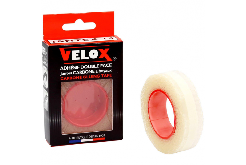 Cinta adhesiva para tubular Velox Jantex 14, producto para adherir el tubular a llantas de aluminio o carbono. Contiene pegamento por ambas caras.
