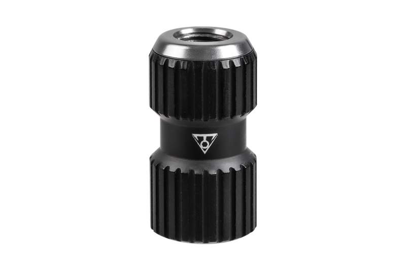 El adaptador Topeak CO2 Nano Airbooster es extremadamente compacto y minimalista, ligero y fácil de usar, se adapta a válvulas Presta y Schrader y funciona con cartuchos de CO2 roscados de 16g o 25g.