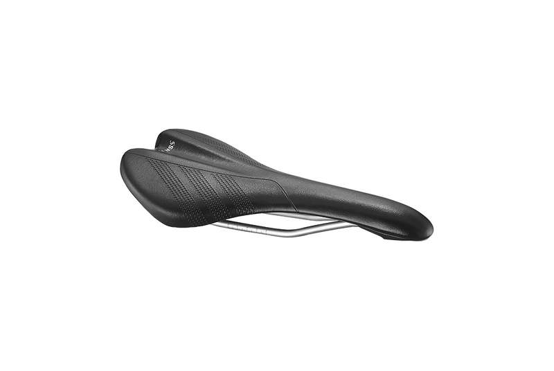 El núcleo del sillin está construido sobre una base de nylon negro con refuerzo de fibra de vidrio, que combina flexibilidad estructural con resistencia torsional. A esto se suman unos rieles de acero satinado, capaces de absorber microvibraciones del terreno y aportar una sensación de estabilidad y firmeza bajo presión.