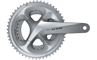 La biela SHIMANO 105 FC-R7000 rediseñada equilibra el peso y la eficiencia sin sacrificar la rigidez. Su paso más ancho incrementa la distancia con desarrollos más pequeños en los modernos cuadros de 135mm de O.L.D. Se ofrece en opciones de platos de 53-39, 52-36 y 50-34D y 160, 165, 170, 172,5 y 175mm longitudes de brazo de biela. Se dispone de opciones de colores negro Silky y plateado Spark.