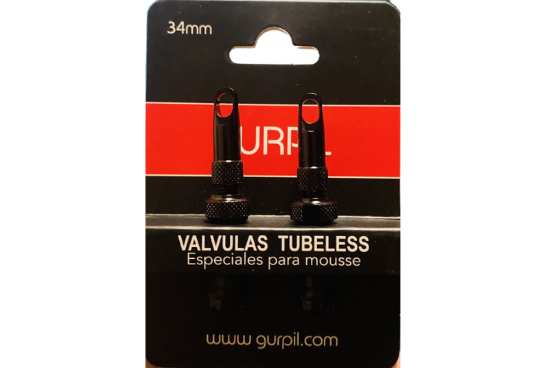 Las válvulas tubeless Gurpil de 34 mm son el complemento ideal para tus ruedas sin cámara, ofreciendo un ajuste perfecto y una estanqueidad duradera. Fabricadas en materiales resistentes y ligeros, están diseñadas para funcionar con la mayoría de llantas tubeless de MTB, carretera o gravel, asegurando un sellado hermético y una excelente compatibilidad con líquidos antipinchazos.