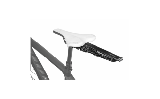 se adhiere rápidamente al tubo del asiento para evitar acumulaciones de suciedad bajo condiciones meteorológicas  adversas. El montaje es muy sencillo, simplemente retirar del paquete, perforar y doblar a lo largo de las líneas perforadas. La impresión reflectante incrementa la seguridad por la noche. Las posiciones de montaje múltiple y las correas de gancho y bucle permiten que los guardabarros se adapten a una amplia gama de bicicletas.