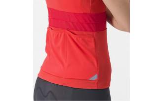 Por otro lado, integra una banda elástica con silicona con los bolsillos traseros llenos de accesorios o geles, eliminando cualquier distracción y garantizando comodidad constante. La cremallera YKK® Vislon® con solapa y tirador personalizado de Castelli permite ventilar fácilmente el maillot y ajustar la temperatura sin interrumpir la marcha.