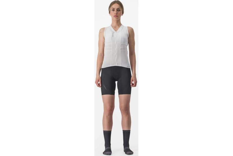 El maillot sin mangas Castelli Anima 4 W está diseñado con tejido ProSecco Velo Donna que garantiza un control de la humedad excepcional, manteniendo la piel seca y fresca incluso durante esfuerzos prolongados bajo el sol. La ausencia de mangas no solo proporciona libertad de movimiento, sino que también mejora la ventilación, convirtiéndolo en la prenda perfecta para las rutas de verano y competiciones de alto rendimiento.
